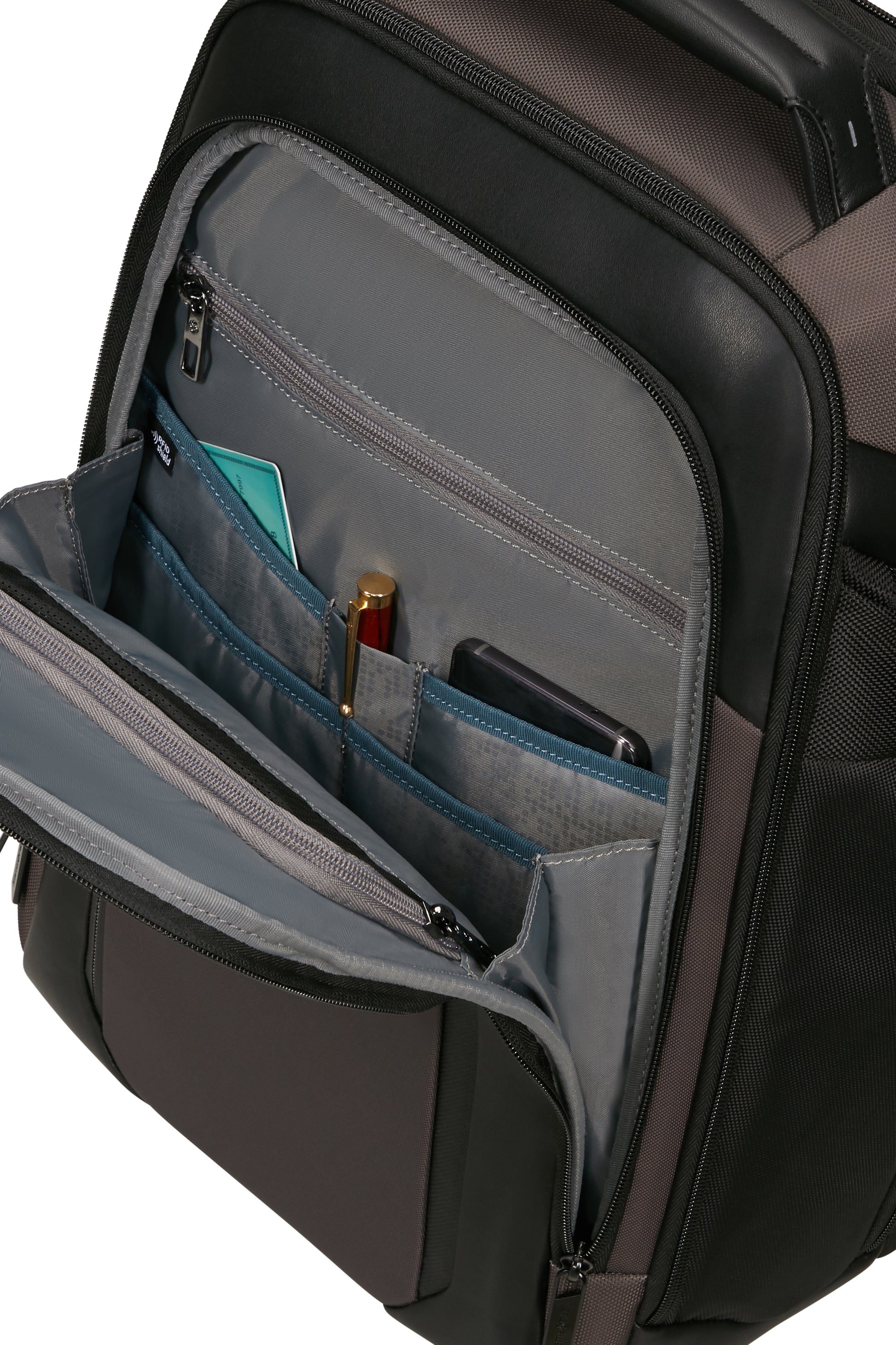 Das Produkt verfügt über ein Fach mit einer integrierten RFID-Schutzschicht, die das Scannen von Bank-und Kreditkarten blockiert.